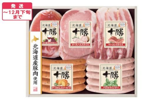●内容量:ぶどう酒で仕上げた生ハム40g、ロースハムスライス60g、ベーコンスライス70g、チーズが入ったソーセージ105g、バジルウインナー105g