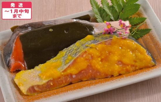 ●内容量:秋鮭西京漬80g×4切、秋鮭昆布〆80g×4切