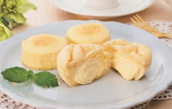 しっとりふわふわな口溶けのチーズ・スフレと、もっちもちのシュークリームのセット。