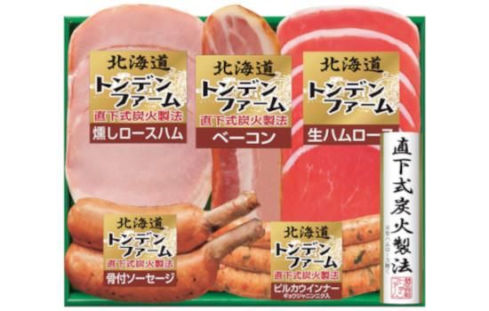 ●内容量:燻しロースハムスライス60g、炭火焼ベーコン(厚切り)50g、生ハムローススライス40g、骨付ソーセージ120g、ピルカウインナー90g
