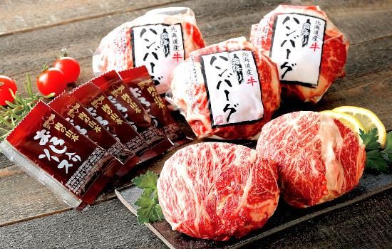 北海道産の牛肉をメインに使用したこだわりハンバーグを北海道産の牛霜降り肩ロースで巻いた逸品です。
