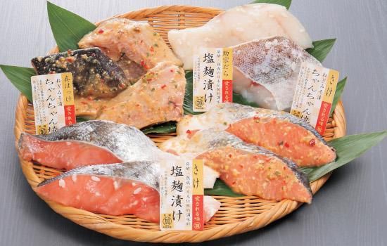 ●内容量:さけ塩麹漬×2切、さけねぎ味噌漬×2切、助宗だら塩麹漬×2切、真ほっけねぎみそ漬×3切