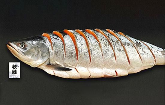 知床沖で獲れた秋鮭の半身姿切りと、ルイベといくらを調味した生珍味のセットです。