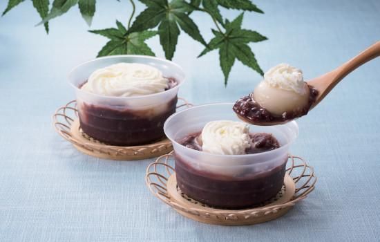 もっちり食感の大きな白玉に十勝産小豆を使用した粒餡と北海道産生クリームで相性抜群です。